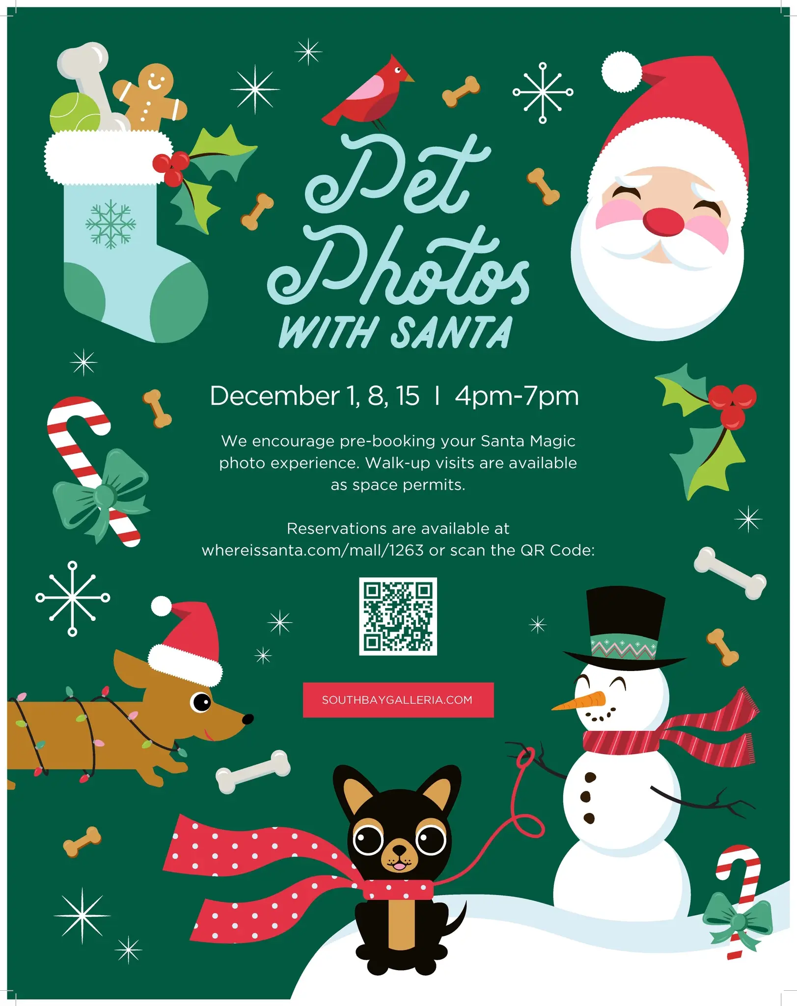 December 1, 8, and 15 only. Visit whereissanta.com/mall/1263 for reservations.